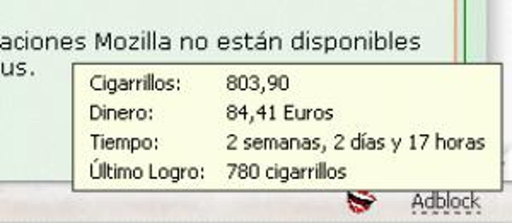 Lo más importante es que esta extensión te notificará mediante una ventana emergente de los logros que vas marcando al dejar de fumar, teniendo presente en todo momento la cantidad de dinero que vas ahorrando. Además, desde el menú contextual, podrás enviar un mensaje de correo electrónico a tus amigos o familia con un informe detallado de tus logros de exfumador.